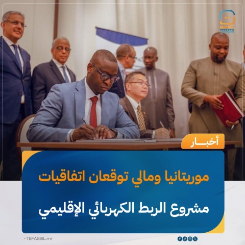 طالب وزير التجهيز والنقل الموريتاني، أعل ولد الفيرك، ونظيره السنغالي وزير البنية التحتية، ديلهي فال، الشركة