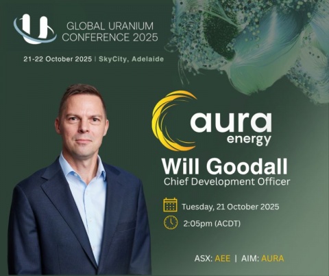 تشارك شركة Aura Energy في المؤتمر العالمي لليورانيوم 2025، المنعقد في مدينة أديلايد الأسترالية يومي 21 و22 أكتوبر 2025، بمشاركة نخبة من الخبراء وقادة الصناعة من مختلف أنحاء العالم.