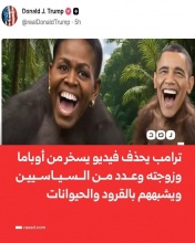 ترامب يحذف فيديو يسخر من أوباما وزوجته وعددٍ من السياسيين، ويشبههم بالقرود والحيوانات، والبيت الأبيض يقول إن الفيديو نُشر عن طريق الخطأ وليس له هدفٌ عنصري